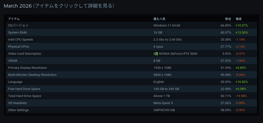 【悲報】Steamの最大勢力、5年前のミドルレンジのRTX3060wwwwww