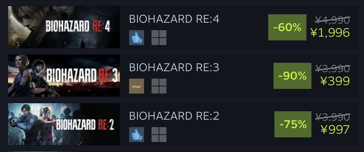 てかsteamにいつの間にか旧オリジナル版(PS版?)のバイオ123出てんのな
