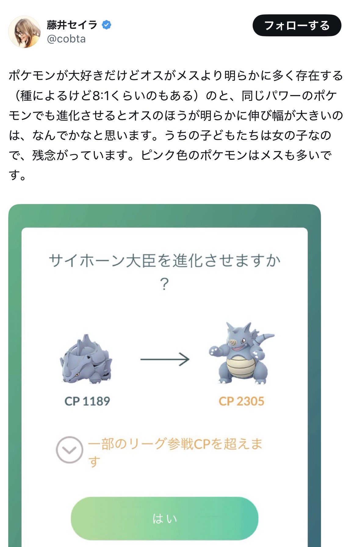 このフェミはポケGOの進化前CPが同じ奴が