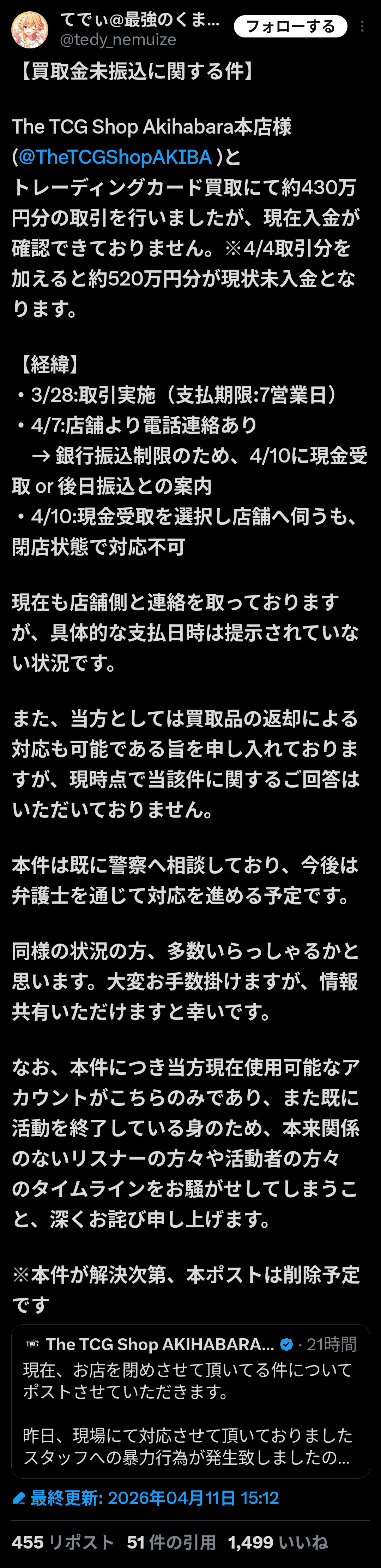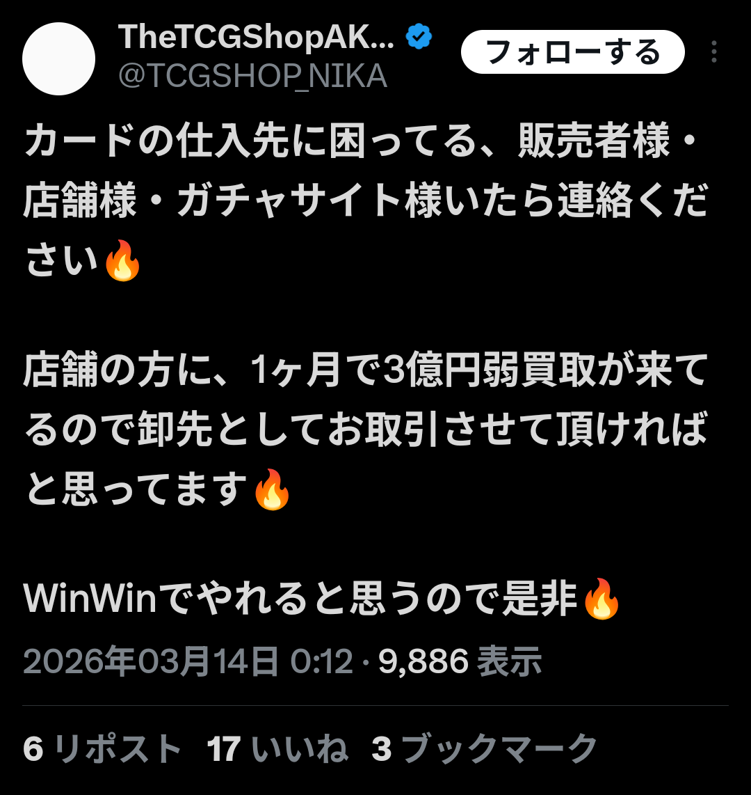 トレカ屋なんて中身ヤベー所多いから信じちゃいかんよ