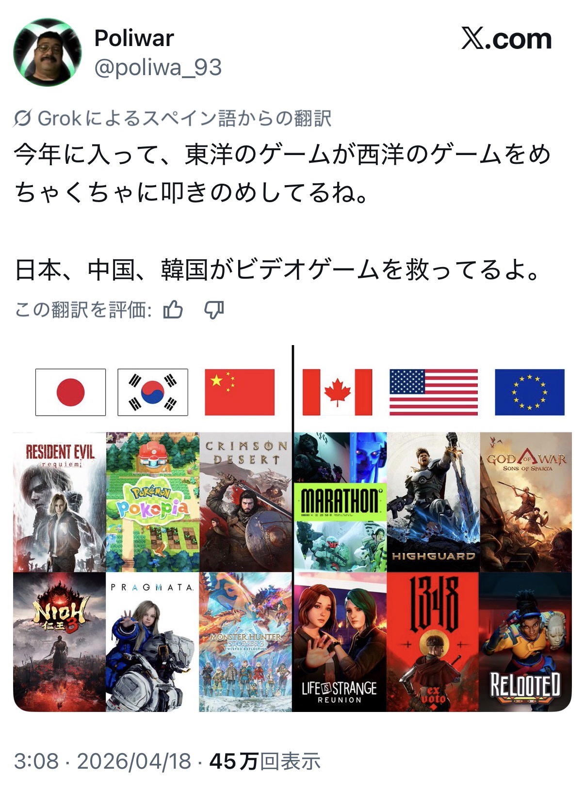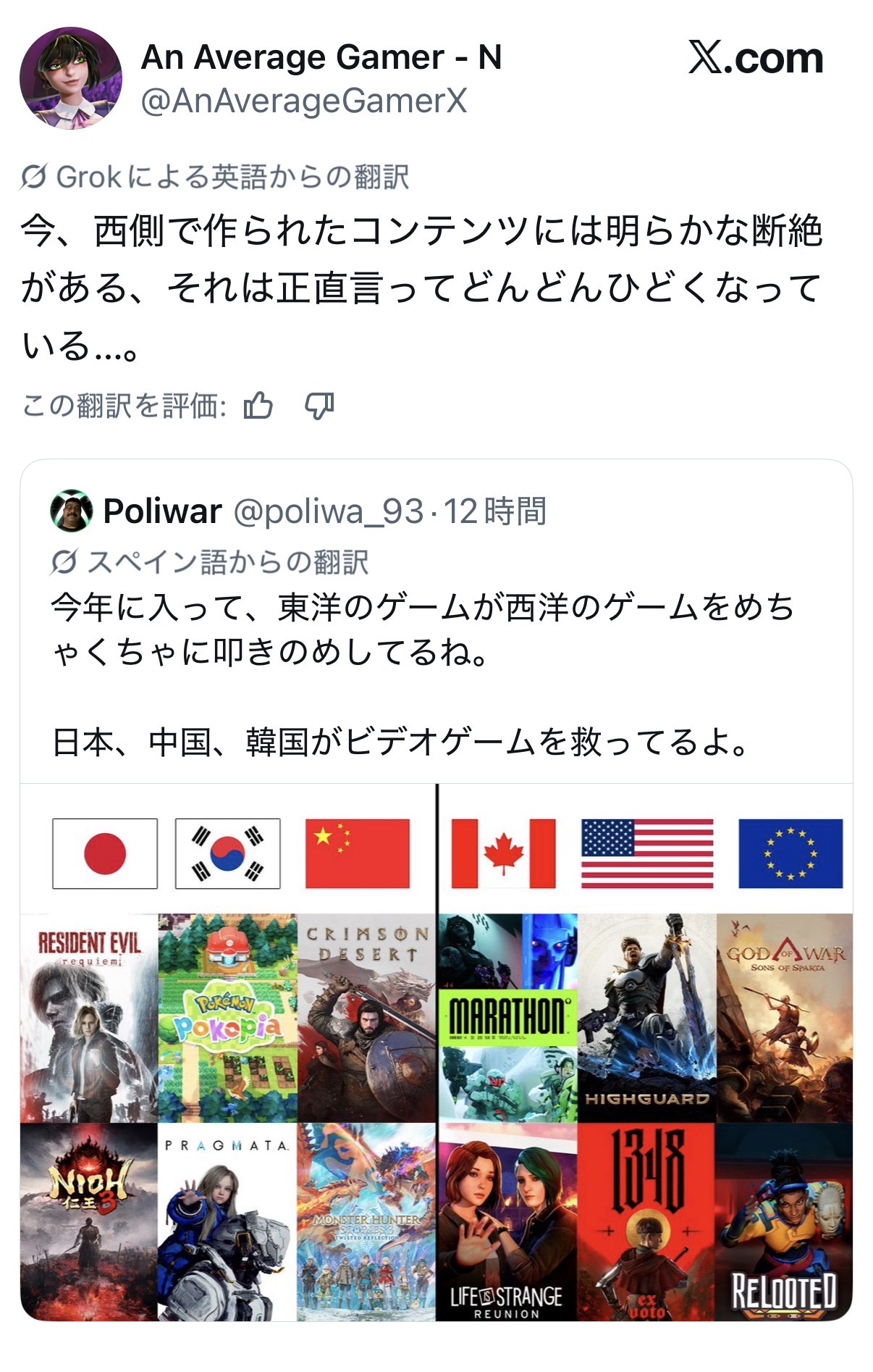 今年に入って、東洋のゲームが西洋のゲームをめちゃくちゃに叩きのめしてるね。