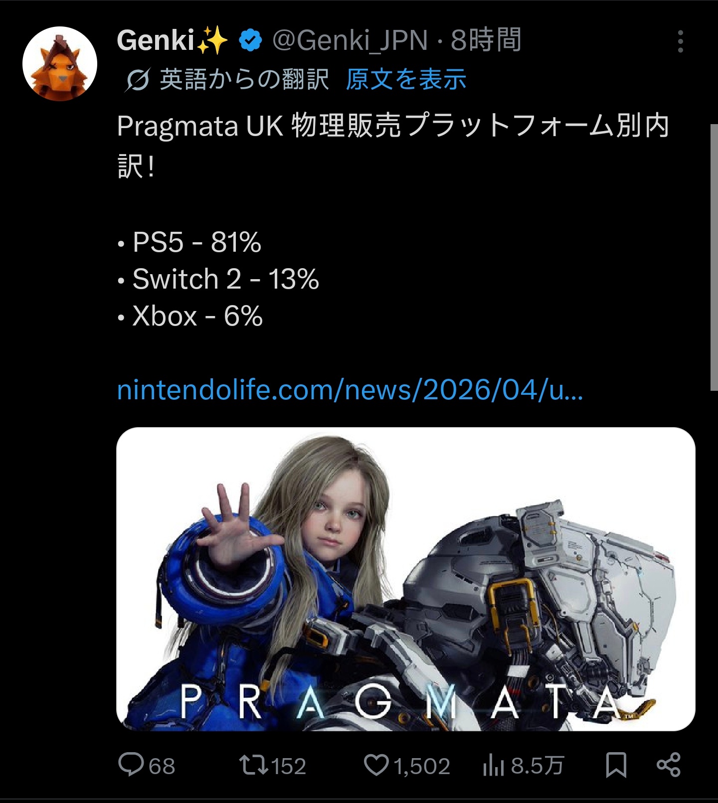 プラグマタはSteam入って無いからSwitch入れたは多分4%(笑)