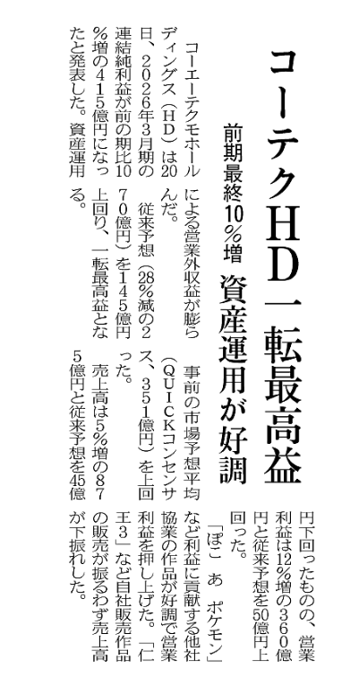 日経とロイターは実際にコーエーから聞いた話を書いてる定期