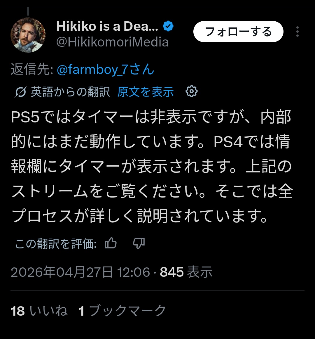 PS4以外でへタイマーが見えない挙動が謎すぎて不安を煽るな